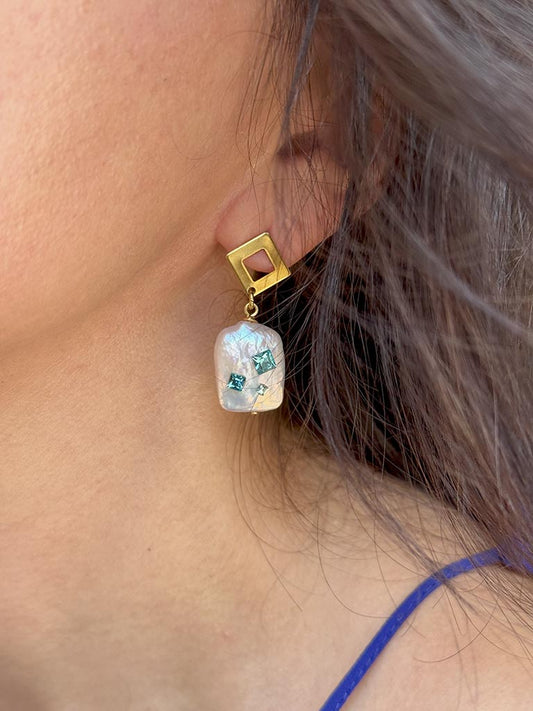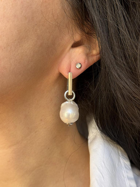 Εντυπωσιακά ατσάλινα σκουλαρίκια με μαργαριτάρια Baroque
