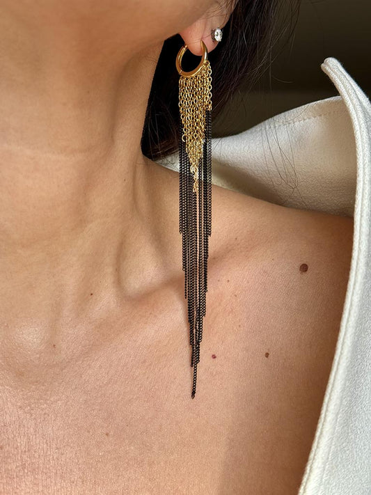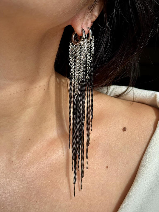 Σκουλαρίκια με πολλαπλές αλυσίδες σε ασημί-μάυρο χρώμα
