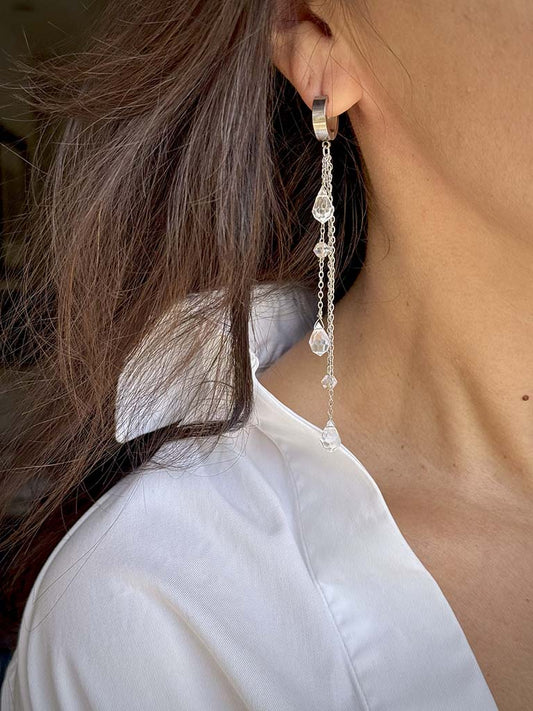 Μακριά ατσάλινα σκουλαρίκια με αλυσίδες και διάφανα κρύσταλλα