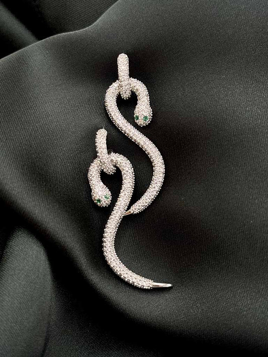 Σκουλαρίκια Φίδι με Ζιργκόν & Πράσινα Μάτια