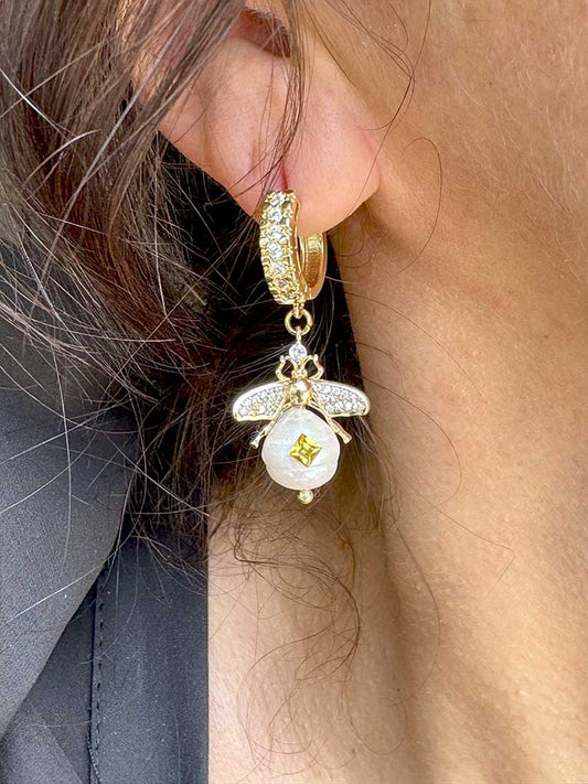 Σκουλαρίκια Μέλισσα με μαργαριτάρια