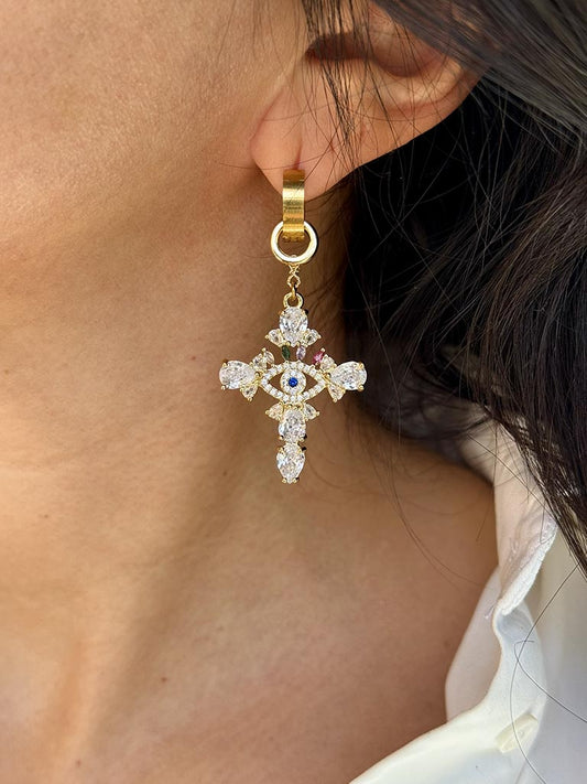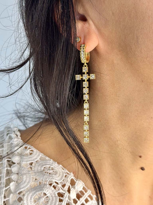 Σκουλαρίκια με κρεμαστό σταυρό με ζιργκόν