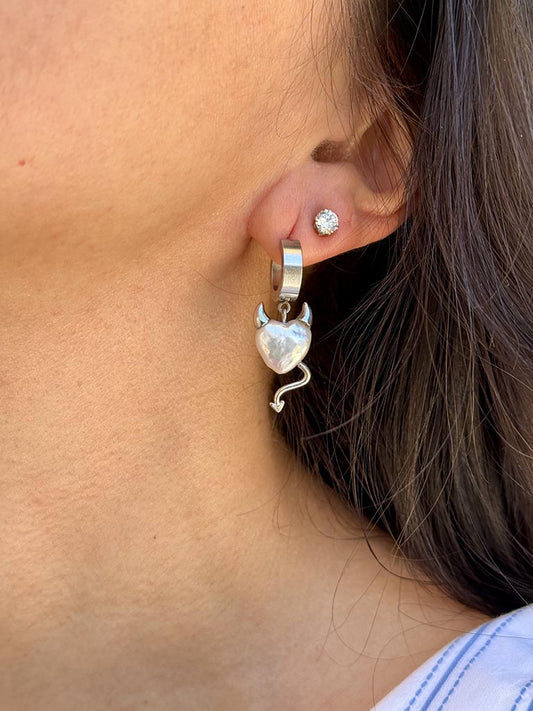 Ατσάλινα σκουλαρίκια κρίκοι κρεμαστή καρδιά διαβολάκι