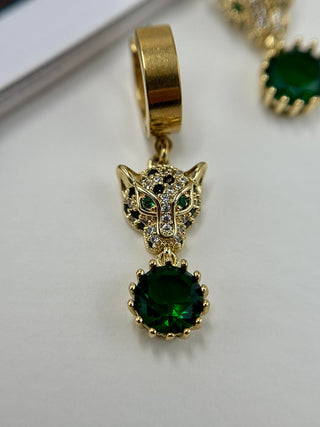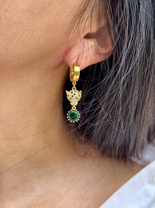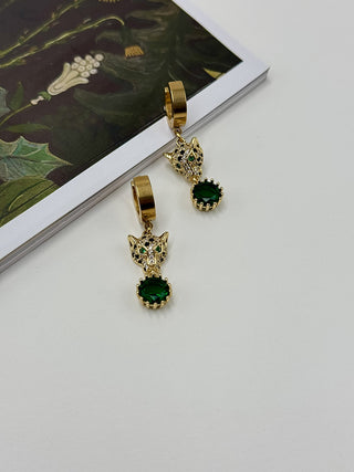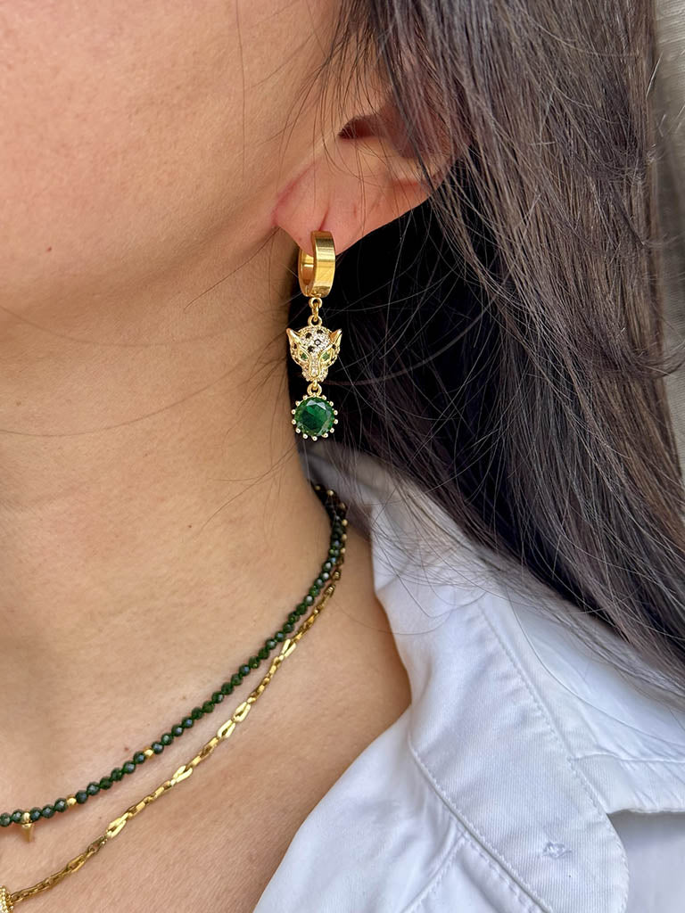 Ένα εντυπωσιακό ζευγάρι ατσάλινα σκουλαρίκια με πανέμορφο κρεμαστό σε σχήμα πάνθηρα και πράσινο ζιργκόν. Για εντυπωσιακές εμφανίσεις που εκπέμπουν κομψότητα και δυναμισμό. Φορέστε τα μόνα τους ή συνδυάστε τα με άλλα κοσμήματα για ένα μοναδικό look.